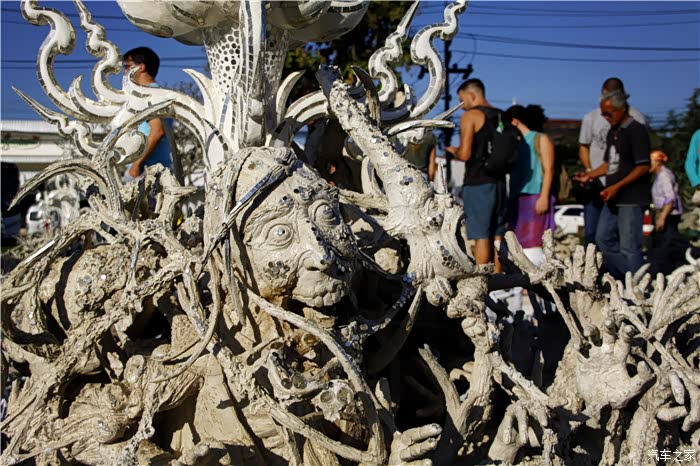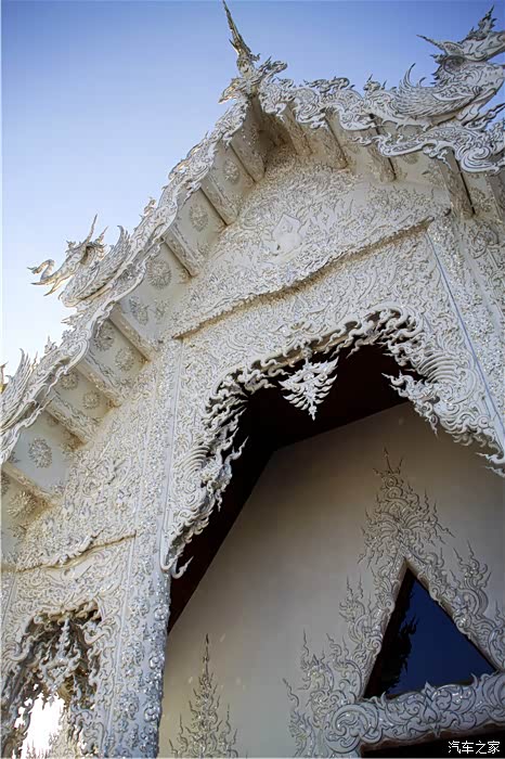 白庙,又叫白龙寺,你在GOOGLE地图直接搜索白龙寺就能找到,从清孔出关往清莱方向走, 沿1020公路走,到与1208公路的交叉口右转就到了!!泰国的寺庙大多是金碧辉煌、金光闪闪的,但白龙寺(Wat RongKhun)却以它的纯白独树一帜, 别具特色。阳光下,这座白色的庙宇徜徉在蔚蓝的天空, 闪着炫目耀眼光芒,就像一件美丽的艺术作品。