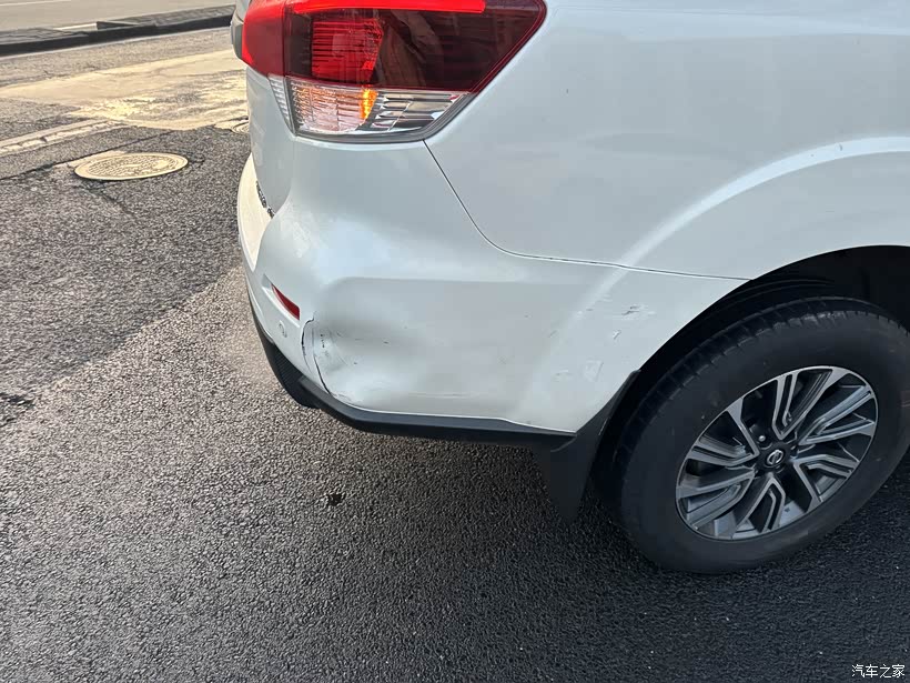 后保险杠是塑料的,怎么修?加热?难搞的多多难看,换吧。如果你能接受也可以不换。