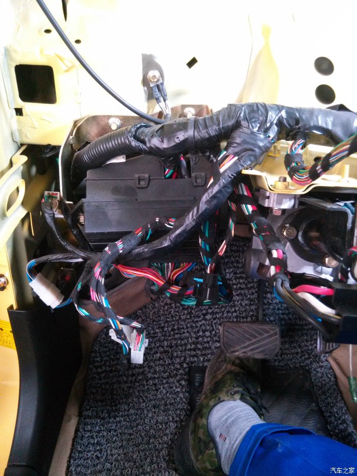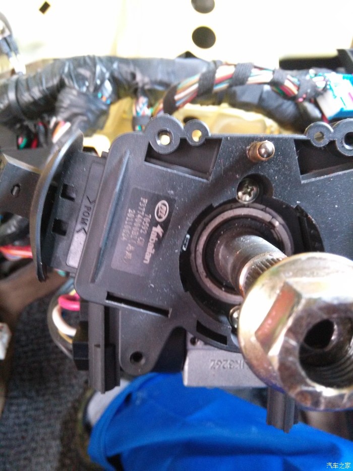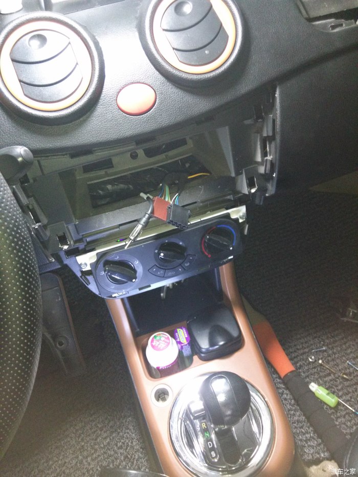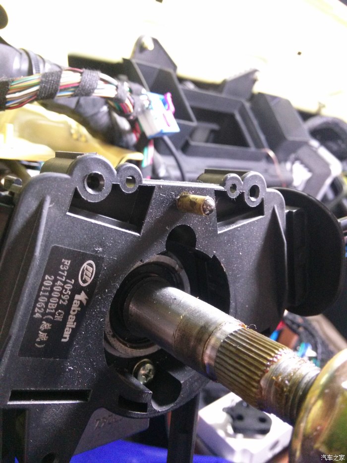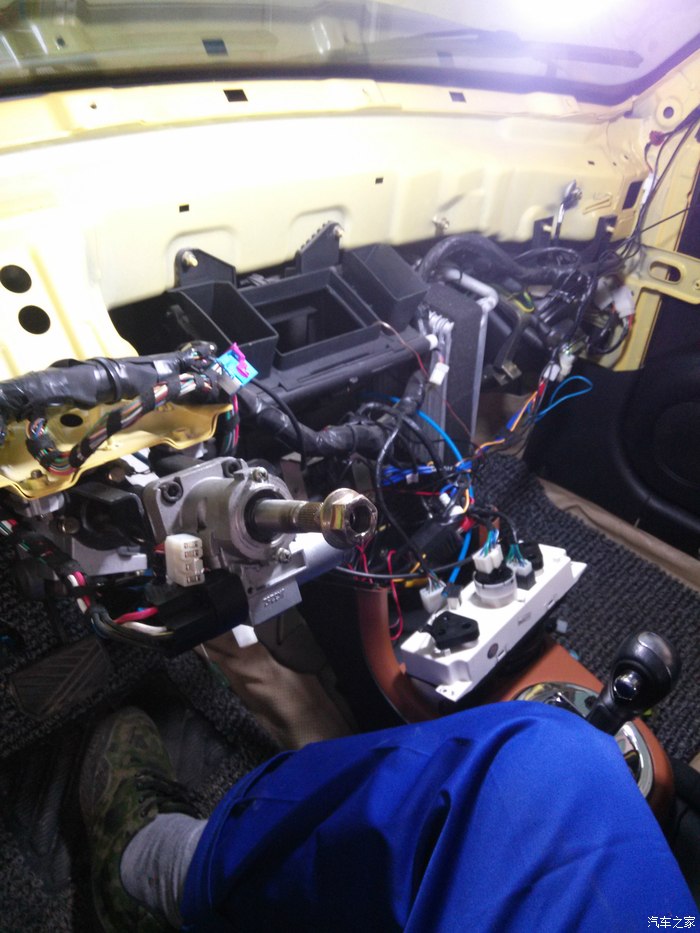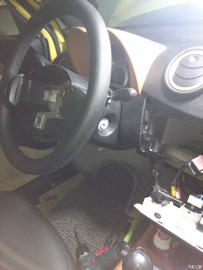 拆的时候忘记拍了,后来补拍的,拆掉CD机、仪表盘、方向管护罩、手套箱等附属设备,方向盘比较难拆,因为是低配的没有气囊和游丝,为了省事没有制作专用工具,直接榔头砸下来的,螺帽有点难看了。仪表台只要拆掉前档下4个螺丝和两侧两个梅花螺丝就能弄下来了