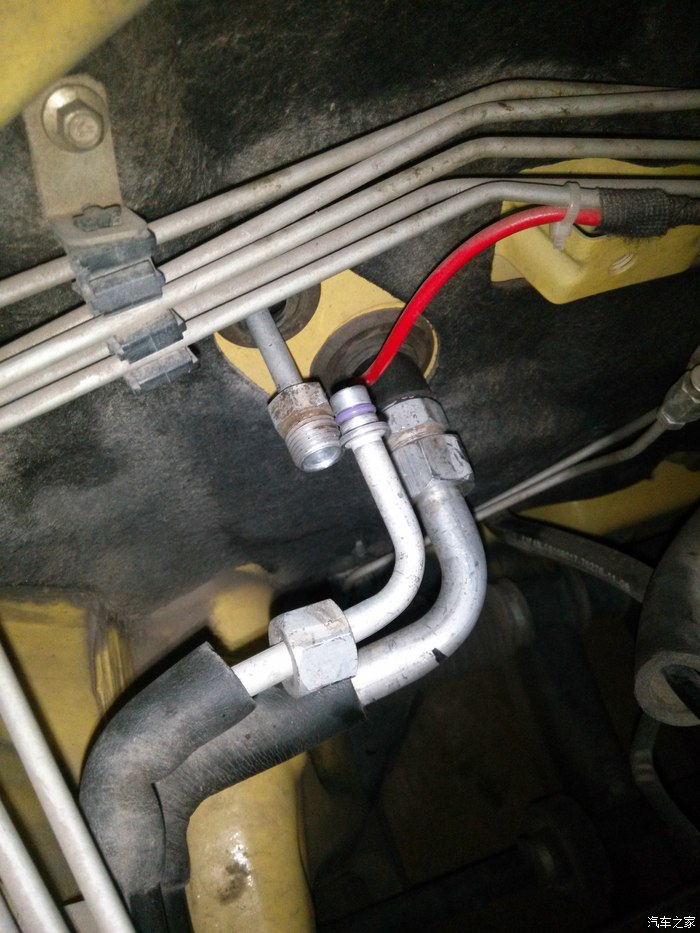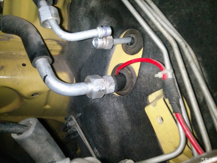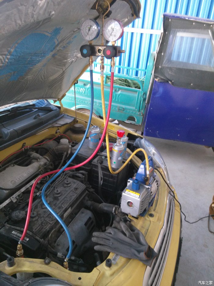 都以为这下搞定了,没想到发动后开空调,没几秒空调皮带响得很,有卡死的迹象,发动机也发闷了,赶紧关了。理了下头绪,看压力表,再开空调,同样几秒后皮带开始打滑,高压压力不上升,管子常温;低压下降,管子出汗,冷凝器入口烫手。我心想完了,弄不好过滤器堵了,最大的麻烦是过滤器和冷凝器是一体的,要换就一套,以后拆下分解还要看里面堵的是什么,搞不好压缩机也不一定保得住。等再几天看看系统还漏不漏,再放掉压力空载看看压缩机能转不。哪位有这方面经验的或是遇到过的请指教下,省的走不必要的弯路。过几天有进展再编辑这个帖子。