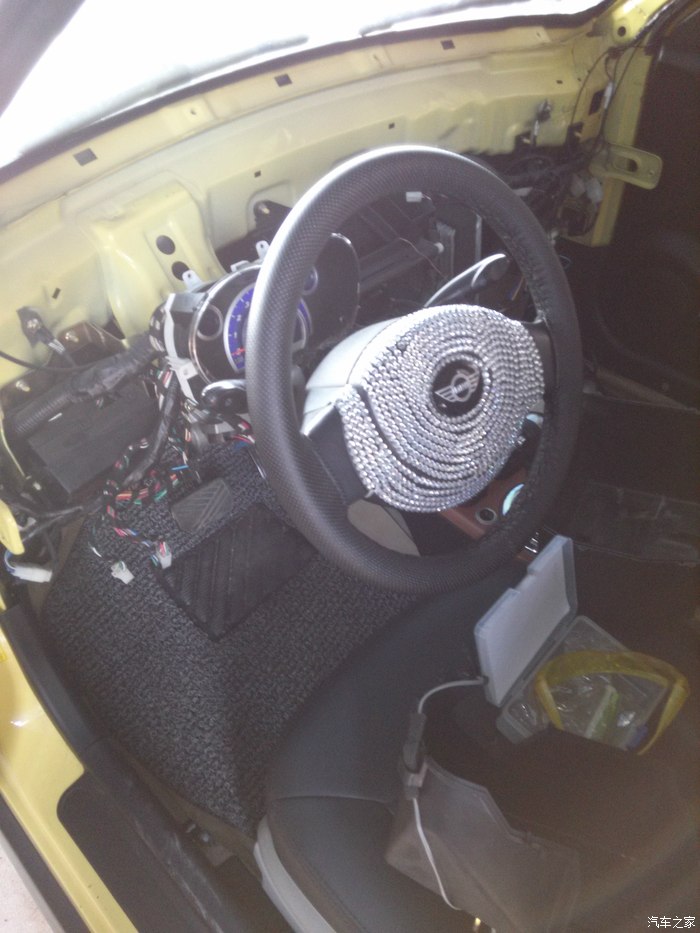 车子内部改了超纤皮座椅,内饰改色,仪表台覆皮,贴了很多mini的标,不知道的乍一看都说是mini。