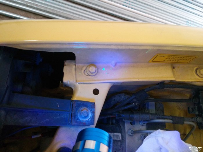 点了一点,肉眼看不明显,紫外线一照很清楚。暂时充了一瓶制冷剂,6公斤压力吧,短时开了下压缩机循环下,装个仪表盘和方向盘就让她先开两天,当时压缩机皮带有点响没当回事