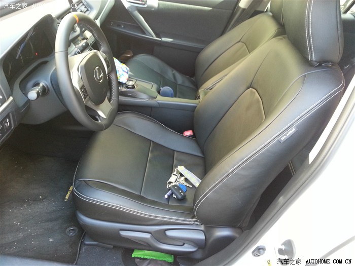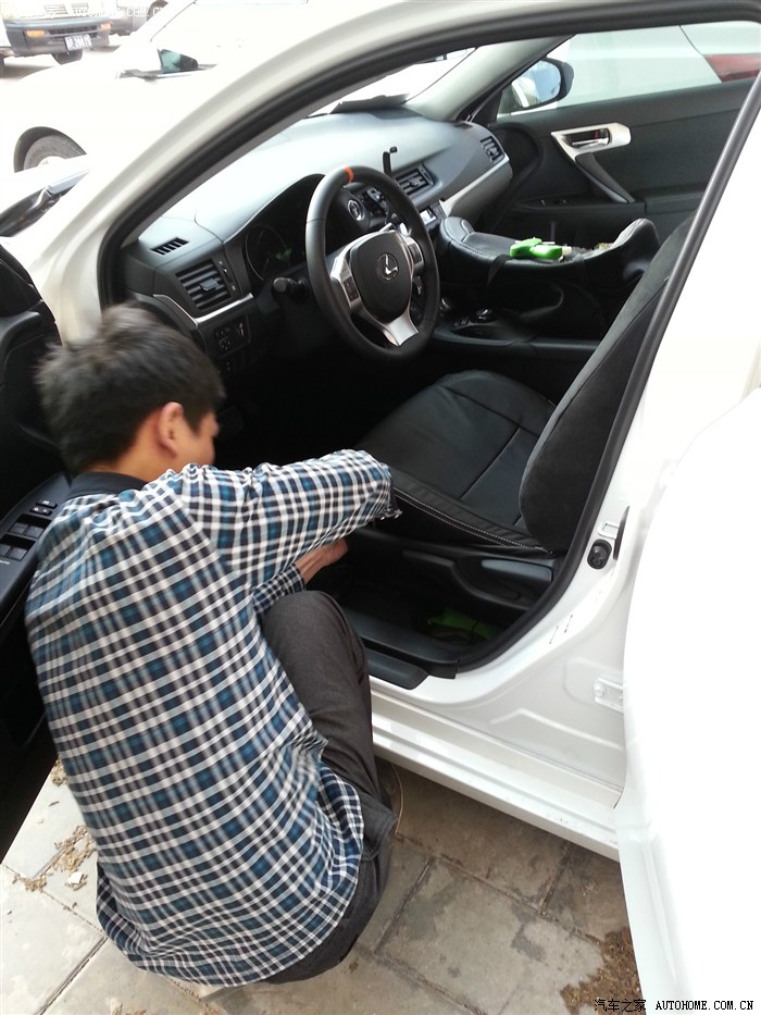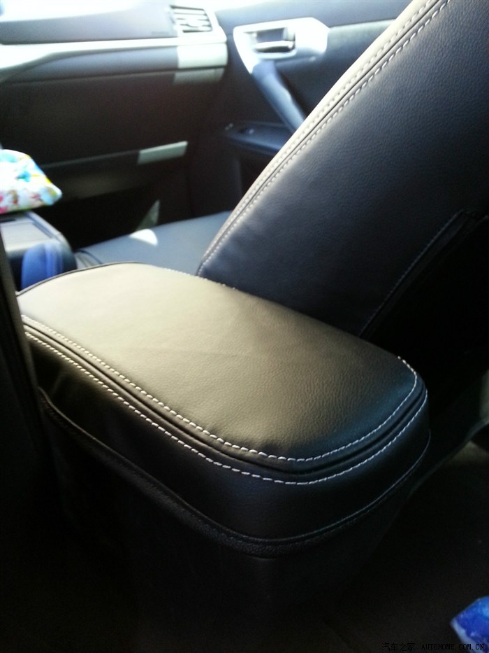 从提车回来就一直想折腾折腾,想先从实用的内饰开始吧,此车的原装绒布座套很舒适,但是档次感略低,而且总显得不干净,这些都不重要,最关键的是不能拆洗,对于一个马上要有BABY的家庭来说,不禁脏且不能拆洗的座套是绝对不实用的,于是首要就是换一套方便实用且能略提升档次感的座套,在网上搜了好久,这套皮革制(非真皮)的为CT200h量身订做的座套成了首选,为什么选皮革而不选布艺的?主要是因为布套不防水,将来有了孩子一旦吐了尿了就要拆洗,而且很容易渗透座套弄脏到原装的座椅上,所以PASS了,而皮革的相对容易打理,脏了用布一擦就行了,而且外观好看,真皮的效果还能满足一下小小的虚荣心!另外此坐套是直接套在原座椅上,但是安装有难度,尽量还是让店家请工人师傅上门安装吧,再有,这座套也只有一千多元,个人感觉很超值!