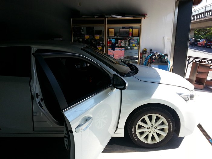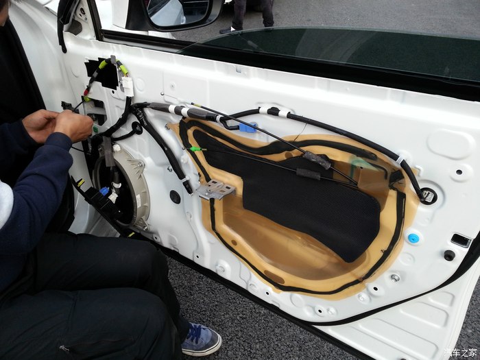 接下来就是安装全景记录仪的一些照片,安装过程持续了4个多小时,需要把左右车门、左右后视镜、尾门及中控大屏拆开,看的我心惊肉跳,期间又到了午饭时间,所以照片拍的不是很齐全只有个大概。