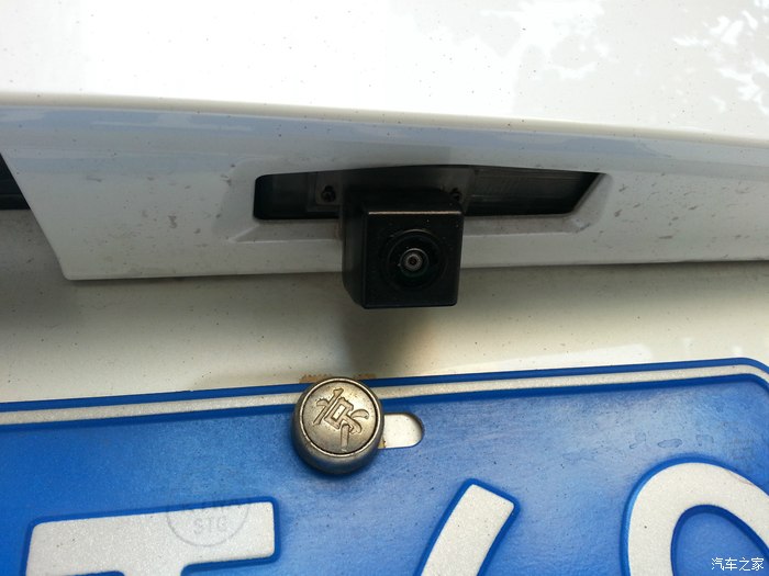 后面一路摄像头装在了牌照框的上面,也就是倒车影像的位置,原车的倒车影像被弃用了,因为全景用的是广角的,所以要被替下来。