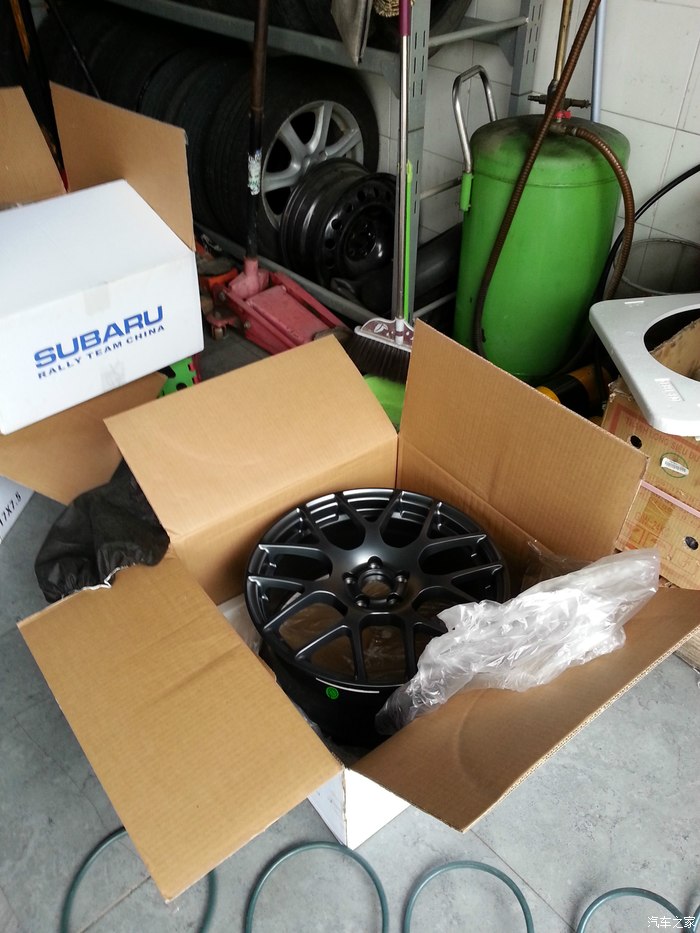 在网上看了众多车友改轮毂的贴子后(本论坛里某车友换的同款银色N936),终于出手采购到了这套专供中国汽车拉力锦标赛斯巴鲁车队所用的雅泛迪N936款轮毂(曾经CTCC的福特车队也用过此款轮毂),颜色是订制的炫黑,不过我觉得可能更接近枪灰色吧?