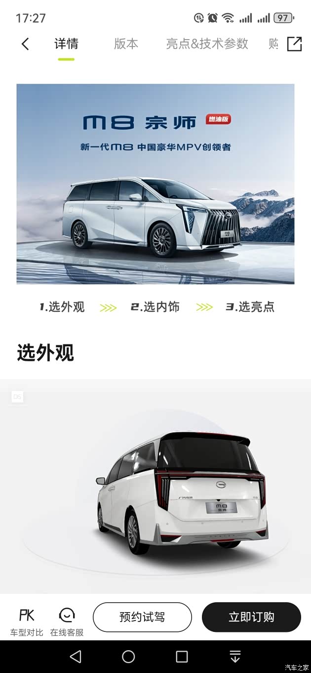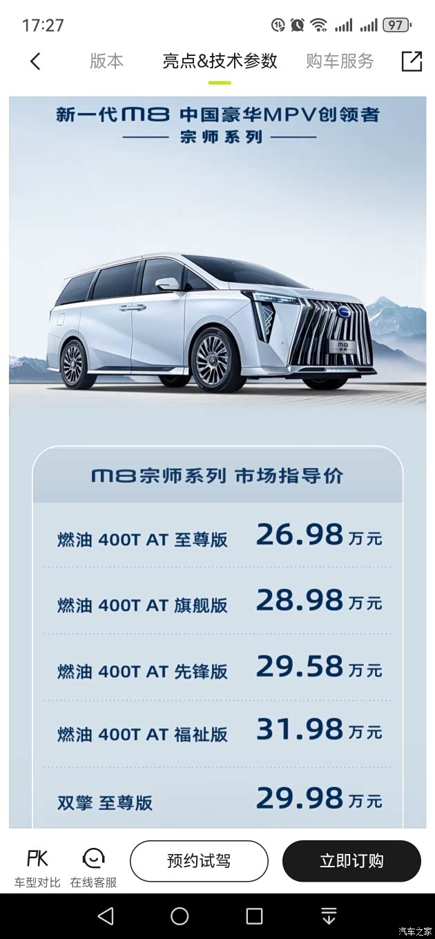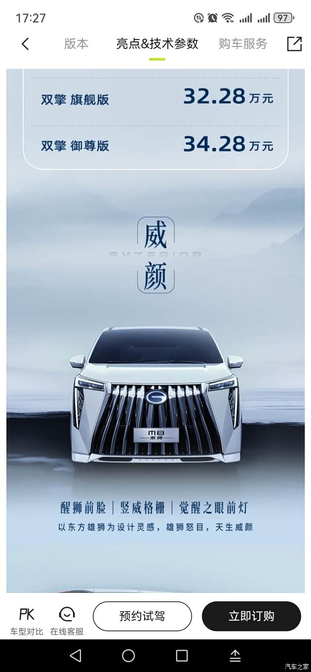 广汽传祺最新推出的2024款传祺M8宗师先锋版顶配车型,在外观、内饰和动力系统等方面都进行了升级。外观设计上,车头格栅宽大,中网采用直瀑式镀铬饰条装饰,并镶嵌着广汽传祺的标志,彰显出威严气势。车身尺寸长宽高为5212x1893x1823mm,是一款五门七座的中大型MPV。