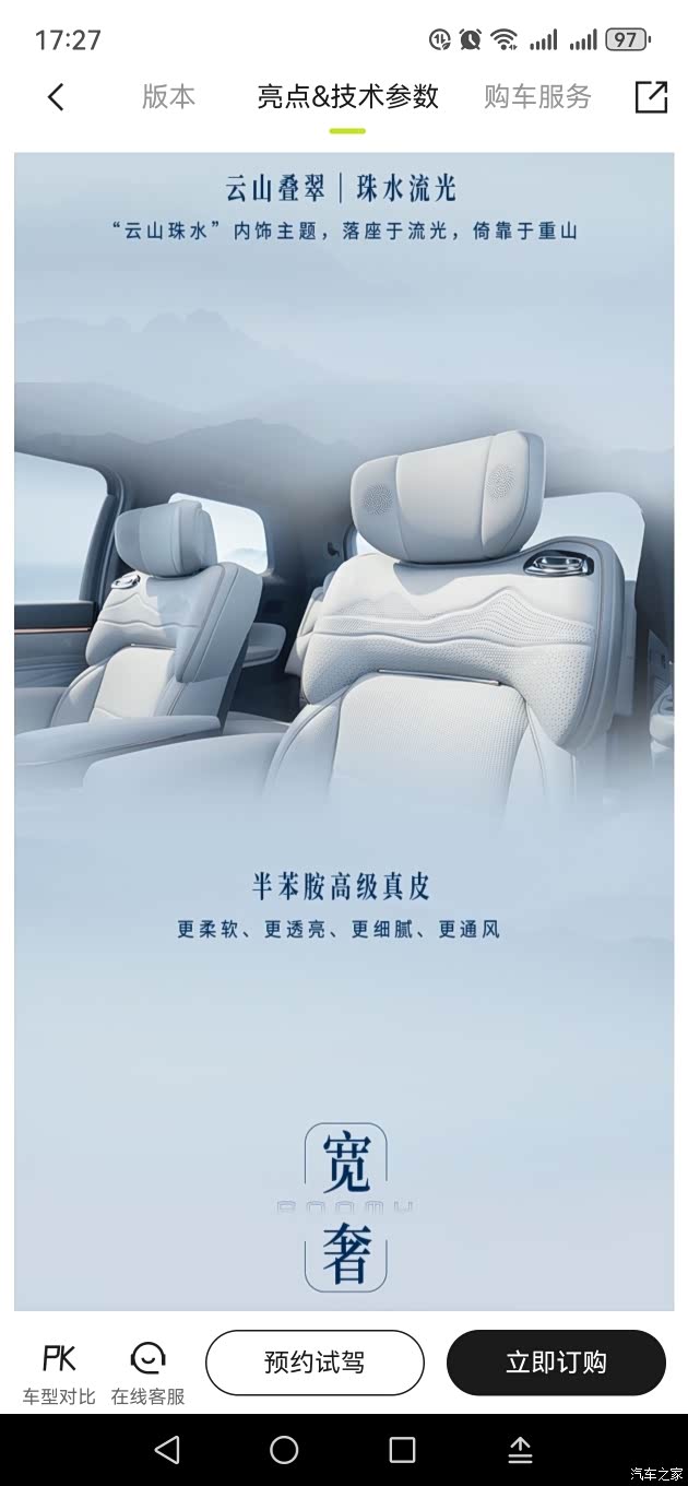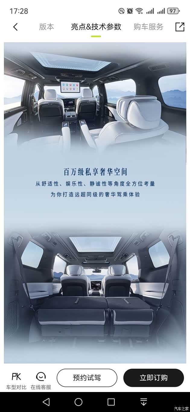 内饰设计与配置方面,中控台造型环抱感十足,配备12.3英寸全液晶仪表盘和14.6英寸中控屏,并搭载华为车机系统。座椅布局为2+2+3形式,提供电动调节、座椅按摩、通风、加热等功能,并配备遮阳帘和小桌板等实用性配置。