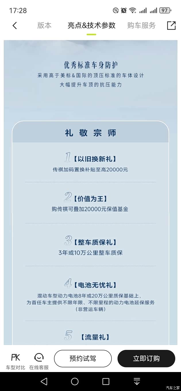 在动力系统方面,新车搭载了2.0T 252马力 L4发动机,并匹配8挡自动变速箱。NEDC综合油耗为8.54L/100km,整车保修期限为3年或10万公里。购车权益方面,消费者可以享受到限时购车权益包含3888元新春红包、至高8000元置换补贴、3年或10万公里整车质保以及终身免费基础流量3年免费6G/月娱乐流量等优惠活动。