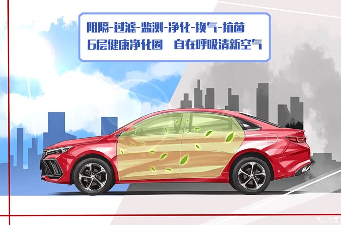 不仅噪音进不来,AQS智能空气质量管理系统也能有效隔绝污浊空气。优秀的车身密闭性加CN95高效滤芯,有效过滤车外粉尘及细菌;并且搭载负离子净化器,沉降空气悬浮颗粒,时刻杀菌,保持车内空气洁净;另外,车外PM2.5浓度检测系统,能在污染指数超标时自动切换为内循环;同时,40秒一次的车内空气更换,3分钟即可置换99%的车内空气,时刻守护你的一呼一吸。
