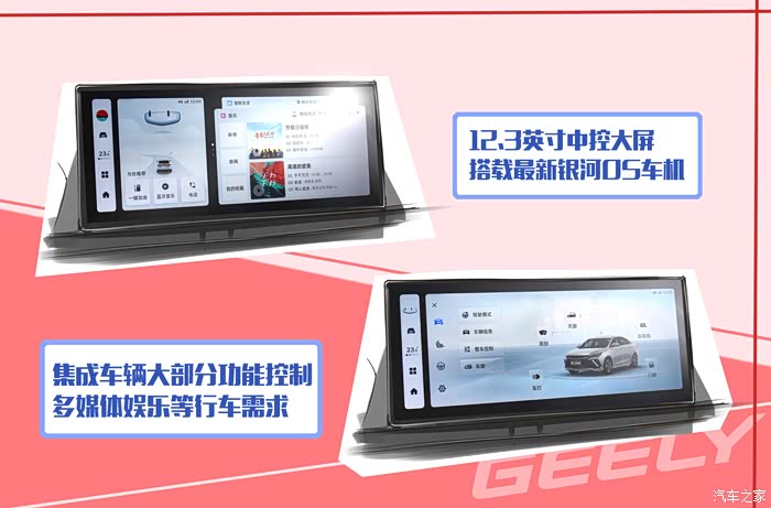 科技配置方面,帝豪L搭载吉利最新的银河OS车机系统,集成在中控大屏中,并且支持FOTA云端智能升级,可以与手机APP联动实时查询车辆状态。硬件方面,帝豪L有着行业领先芯片技术的加持,12nm先进制程工艺及八核CPU,可实现多任务高效并行处理。软件方面也集成了AI语音控制及多媒体娱乐需求,独具特色的是,这套系统支持AI语音整合,你可以录制家人声音,通过AI编为完整的车机语音,在你的出门路上全程陪伴。