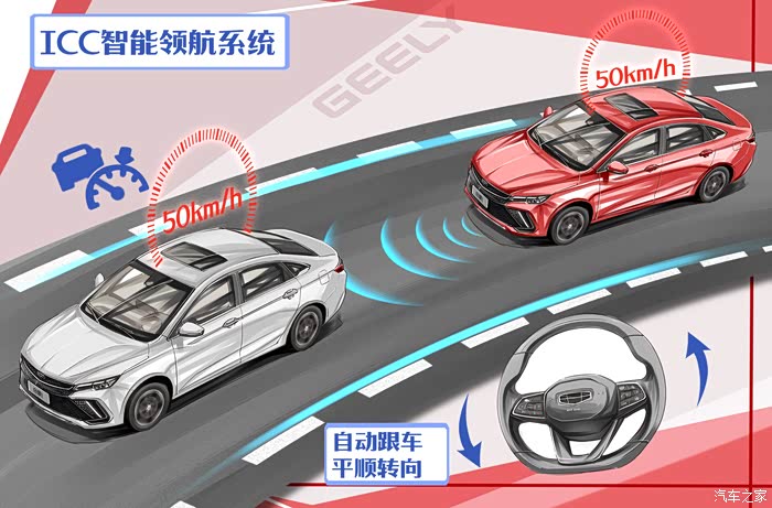 “会排队”——ICC智能领航系统,是在一般的定速巡航基础上,加入同时探测道路标线和前方车辆行驶状态的功能,以自动保持车道及跟车行驶。实现智能车距控制,自动跟停及转向,让驾驶更轻松。