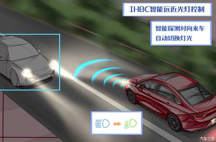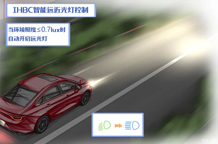 “会眨眼”——IHBC智能远近光灯控制。顾名思义,这套系统可以自动识别周围环境,根据自身行驶状态实现对大灯的智能控制。当车辆的光感系统探测环境照度≤0.7lux时,近光灯会自动切换为远光,当探测到对向有来车时,远光灯则会暂时关闭,会车结束后,远光灯重新开启。驾驶员可以只管好好开车,像开关灯这种事儿,交给行车电脑吧!