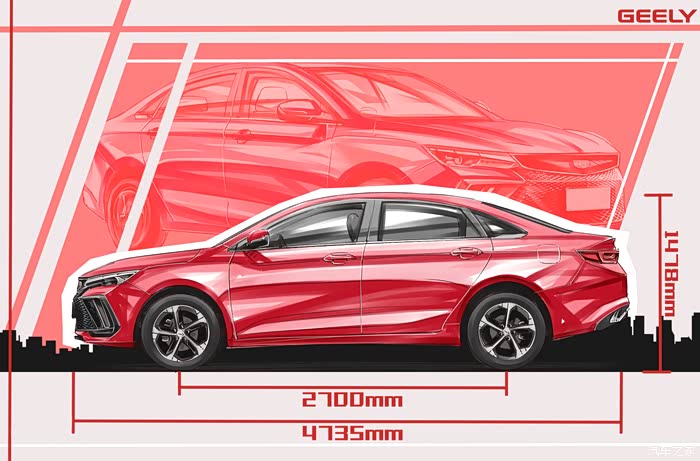 帝豪L依然采用了熟悉的双段式腰线,干脆地切割出极具几何质感的车身,与下方同样犀利的裙线相配合,营造出俯冲的车身动态。车顶线条流畅顺滑,窗线中还有一根镀铬条提升整体格调。帝豪L的长宽高分别为4735/1815/1478(mm),轴距为2700mm,相比不带“L”的帝豪增加了50mm,同时也给它的空间表现多了些值得期待的地方。