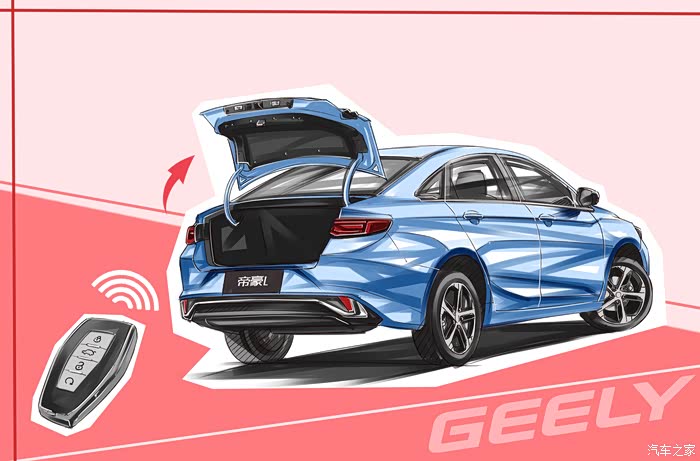帝豪L既然带了个“L”,它在空间上的表现肯定是有所提升。加长的轴距为后排乘员空间增加了几分宽敞,全系标配的后排中央扶手,空调出风口和USB接口,相比同级别车型光秃秃的面板显得诚意满满。另外,人性化关怀也不能少,手持重物时只需携带钥匙在车尾1.5m范围内站定3秒,后备箱自动打开到顶,这也是帝豪L的贴心小设计。