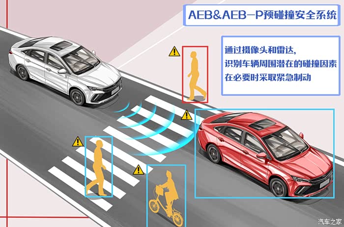 “会刹车”——AEB&AEB-P预碰撞安全系统。ICC智能领航系统可以有效缓解高速公路驾驶的疲劳,而身处市区道路走走停停似乎更为常见。针对此类路况,帝豪L搭载的AEB&AEB-P预碰撞安全系统即可派上用场。行车电脑会通过雷达和摄像头实时监测前方路况,包括车辆,行人,两轮车等,若探测到存在碰撞可能,系统将及时采取相应预警并且自动制动,实现“眼观六路耳听八方”,有效避免因驾驶员反应不及时或采取措施不当导致的事故风险,提高在城市道路中行驶的主动安全性。