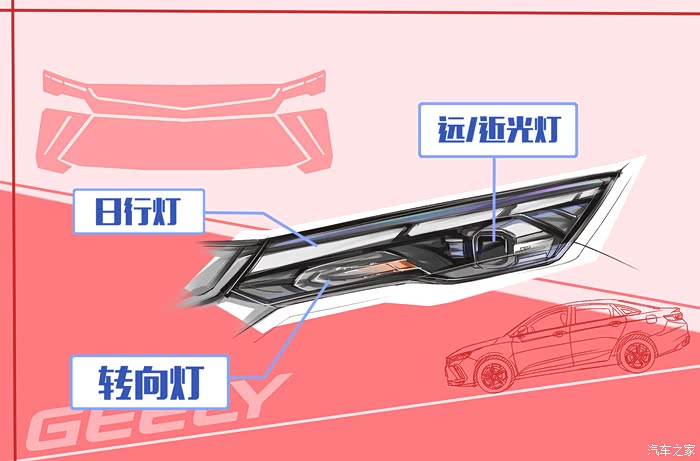 灯组方面也不乏看点,狭长的大灯布局内含12颗LED灯珠,横向三段式日间行车灯搭配下方黑色饰板中竖向日行灯,交织出X型灯光效果,在个性这方面,帝豪L拒绝千篇一律,独具特色。