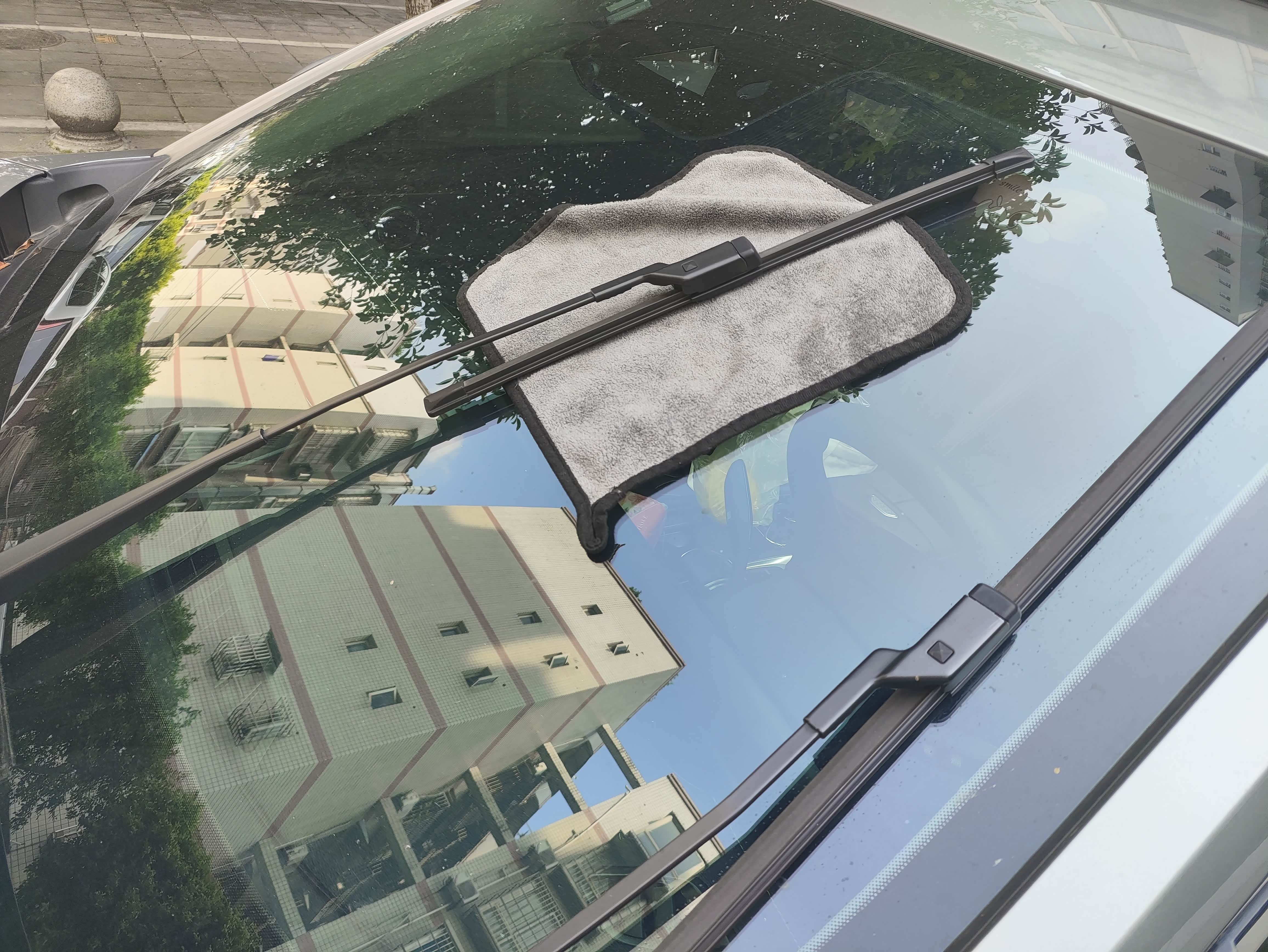也可以单独拿出来配个毛巾擦拭雨刮,先启动车辆开启雨刮维修模式,就可以对雨刮条进行擦拭,注意好保护玻璃,垫一块毛巾