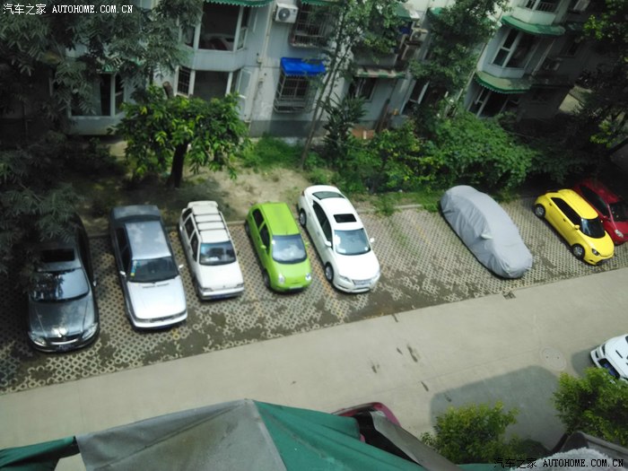 小区停车位上,刚下过雨,可能手机问题咋看起来那么黄呢?