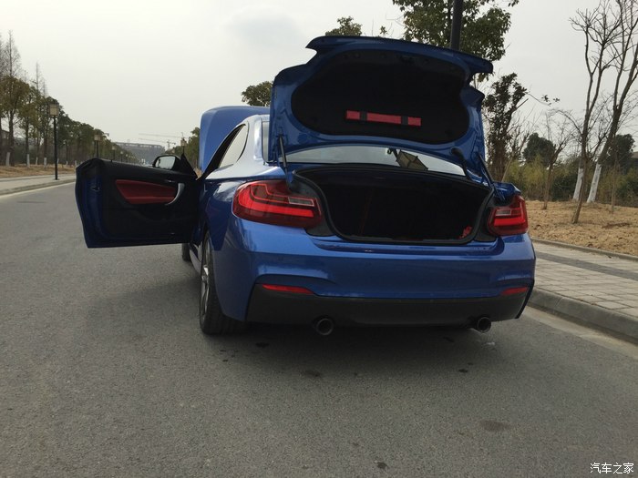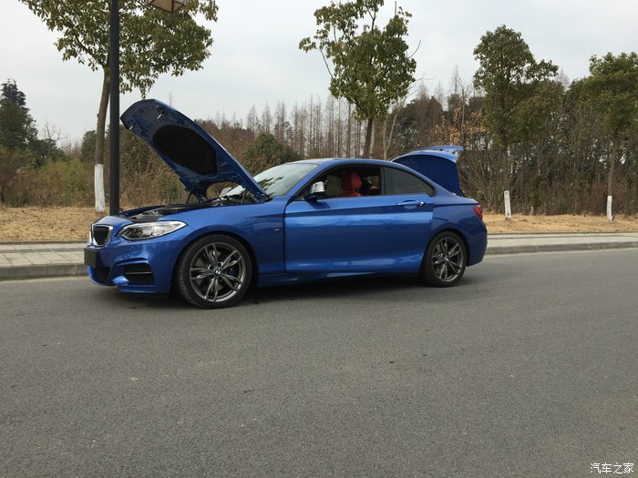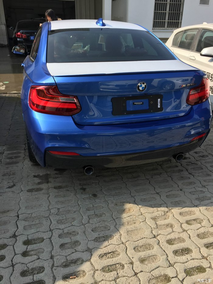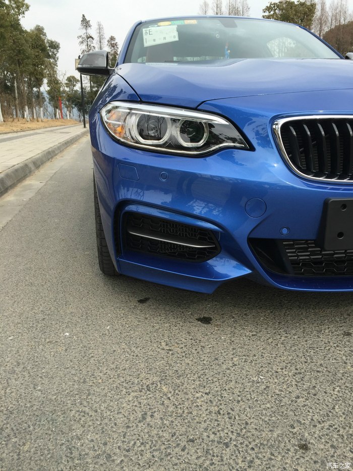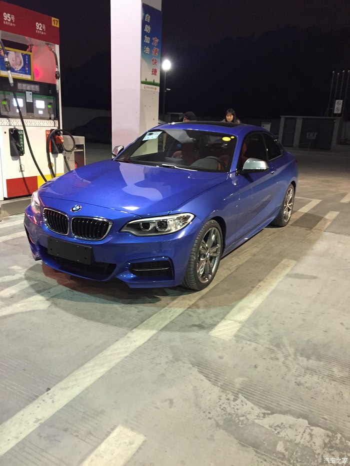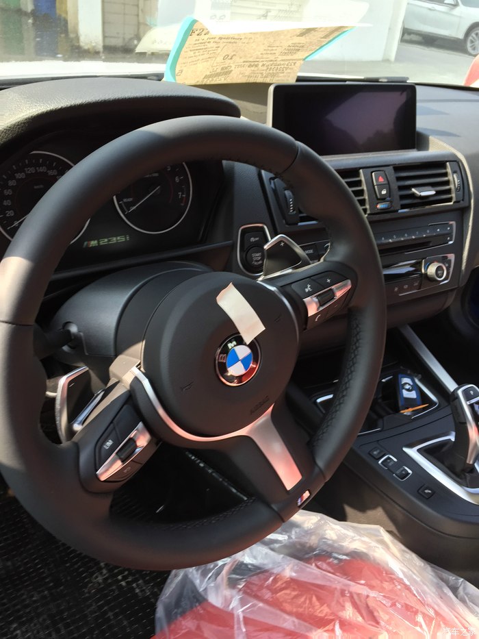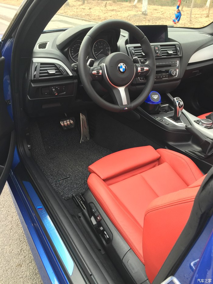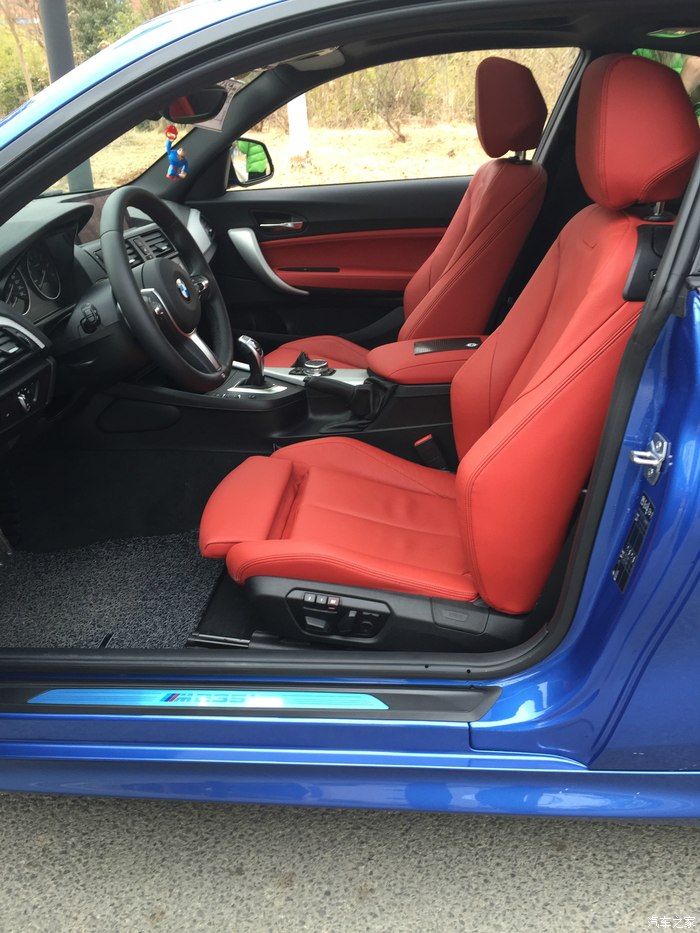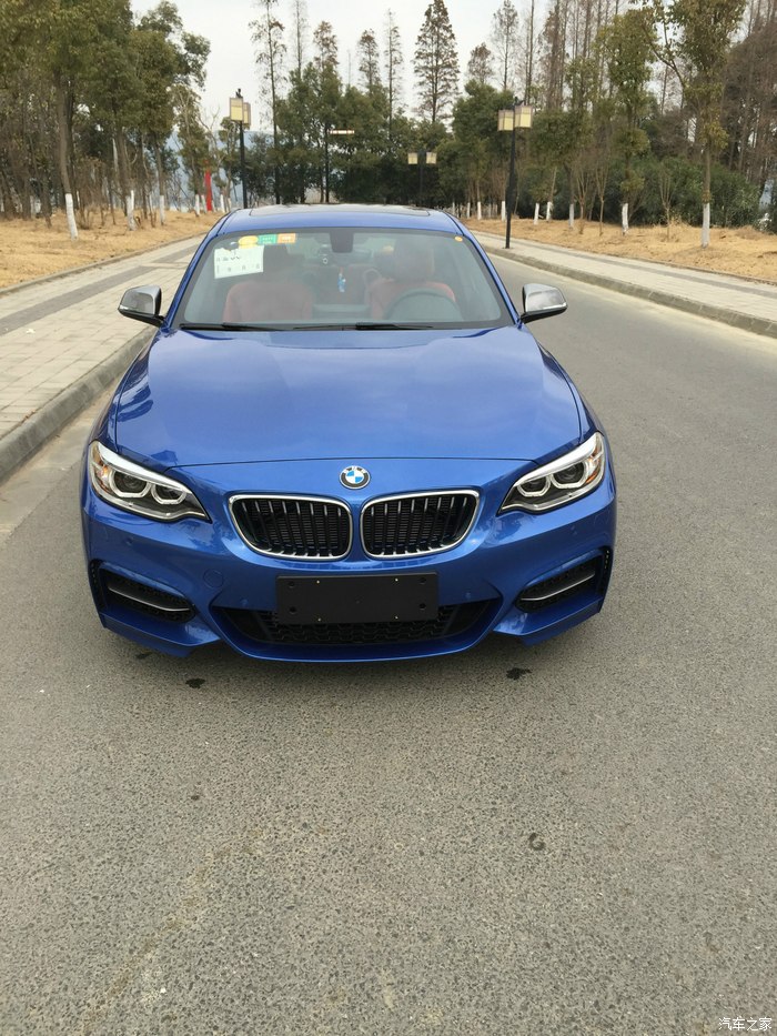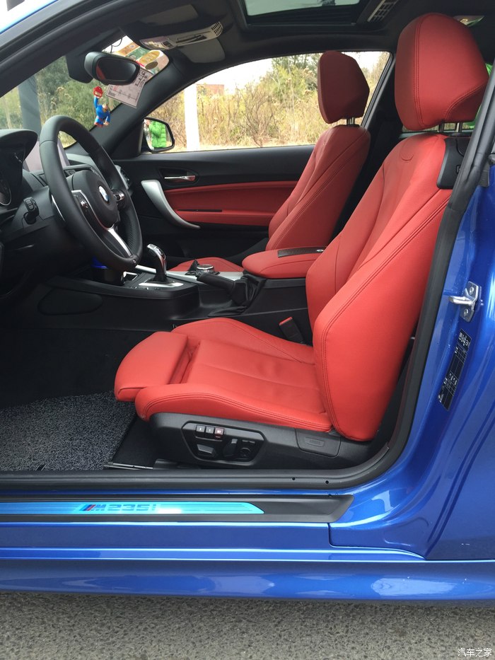 回家就一直看看A45的视频,看了炸街视频就心里在YY自己在炸街。突然!发现好几个视频是A45对比M235i。M235i什么GUI?好奇心使我搜了一下它。天呐!天呐!完了完了!心扑扑直跳个不停。太骚了!关键还是三厢车!(虽然挺中意A45的不过还是更喜欢三厢车)。马上进入了2系的论坛,打开一篇篇235的提车作业。中毒了中毒了。再一看报价,51.7。还可以。马上给父母看了他的照片,父亲表示很中意,母亲觉得虽然是4座可是2个门进出不方便,反对!但是我想城市里开短点的车灵活,家里也还有一辆车,虽然是两门但是后排也有座位,反正家里也有车,后排座位基本也就放放包包难得坐坐人。颜色方面我是一眼看中埃兰!父亲觉得白色好看觉得蓝色太另类,拗不过我,我还是喜欢埃兰。在母亲的坚决反对2门的情况下,父亲和我统一战线,偷偷的在8月12号的时候去了4S店,销售挺爽气,直接说优惠7个点,觉得挺不错的马上下订单,选配了珊瑚红座椅。一开始就很中意珊瑚红(必须红色!蓝配红多个性,要的就是骚气),一直对那个黑的没啥感觉觉得很容易脏,还有舒适进入,电动防眩放光镜,巡航定速、前雷达、后摄像头,阳光玻璃,折叠头枕,大灯升级组合(反正是自己开,配置多也不是坏事,自己享受)销售告诉预计在元旦的时候到车。这里要痛斥坑爹的四儿子!一开始问销售说怎么没写具体什么时候到店,销售说写了万一船沉了被海盗劫了不就不能按期了吗,当心我还听着挺有道理,可是回家越想越气,8月14定的车,到了10月都还没来车架号!后来才知道是没配额,直到双11才拿到车架号,比我早定两天的一位苏州车友都提车了