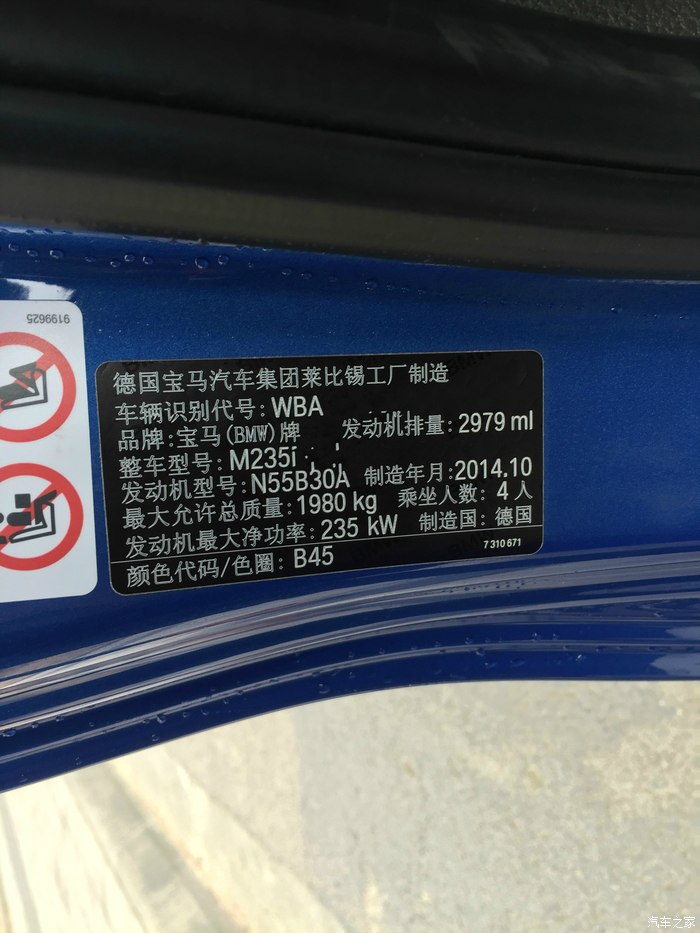 。自从拿到了车架号心也踏实了,销售和我说预计12月末到港1月中下旬提车。但过了几个礼拜销售告诉我一好消息,12月17能到港,12月底能提车!果然,12月30号傍晚车到店!赶上了2014年最后一班末班车。31号马不停蹄赶到四儿子店,刷钱签各种字上保险,眼看可以开走了,什么!销售和我说临牌用完了!要40分钟,当时老家还有事一想销售说的40分钟指不定一两个小时,就先回老家办事再来提车,没想到大堵车,天都黑了6点提车!(现在想想也是醉了)。因为之前完全没有开过一次235,坐上去以后轻轻一开油门,声浪来了,别提多兴奋了!上了高速试了下SPORT模式,排气更加明显了,从未有过的快感。