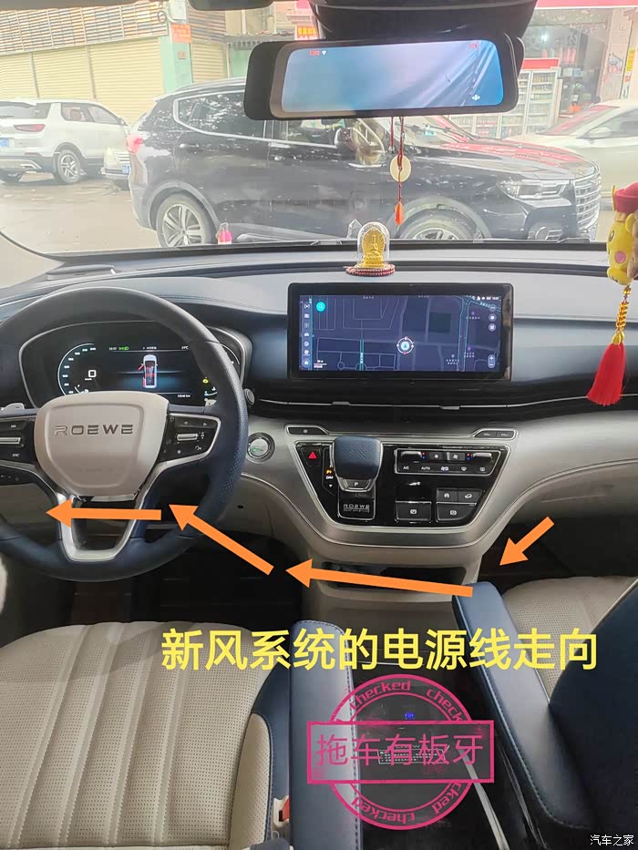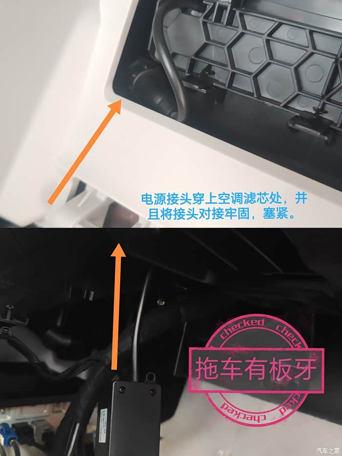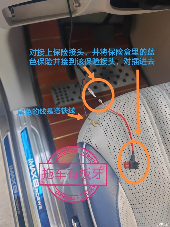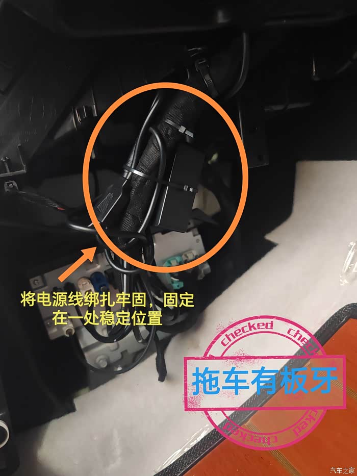 6、从主驾位置油门踏板处穿一条硬线过去副驾驶位,将新风系统的电源线拉过来。