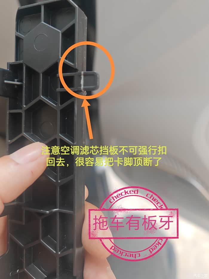 2、拆下副驾驶扶手箱,拿下空调滤芯挡板,取出旧的空调滤芯。