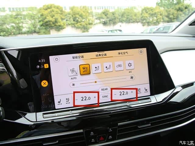 1、打开车载中控屏,点击中控台右上侧的CLIMA按键,进入空调界面。