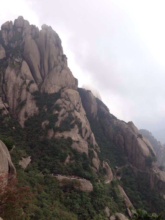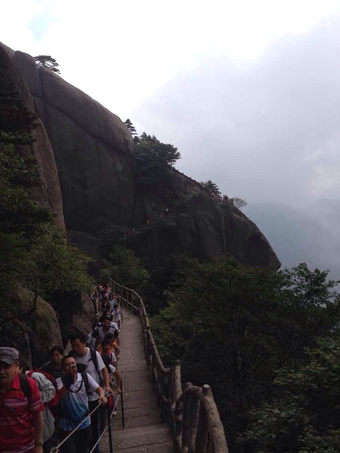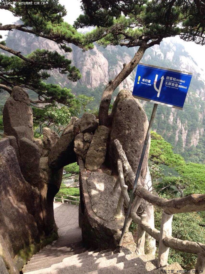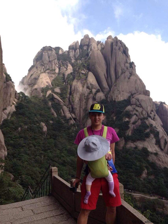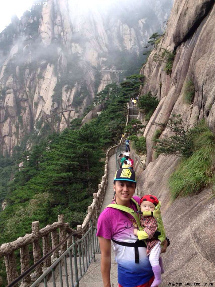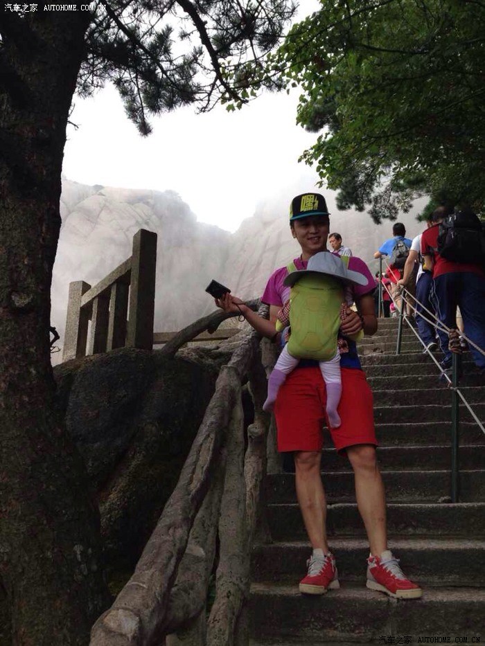爬黄山的过程真的很辛苦,宝宝还是照旧睡了一觉,到了黄山的最高峰——莲花峰的时候,我放弃了登顶,因为腿已经累得挪不动了。我们决定分道扬镳,老公自己上莲花峰登顶,我抱着女儿到迎客松跟他汇合。自己抱女儿从莲花峰下走到迎客松也是一个艰难的过程,路上很多游客看到我自己抱着孩子在登山,都给我加油鼓劲,甚至鼓掌~其实他们都不知道前半段是孩子爸辛苦抱上来的~分叉路口,自己抱着女儿就是从这个路口开始走的