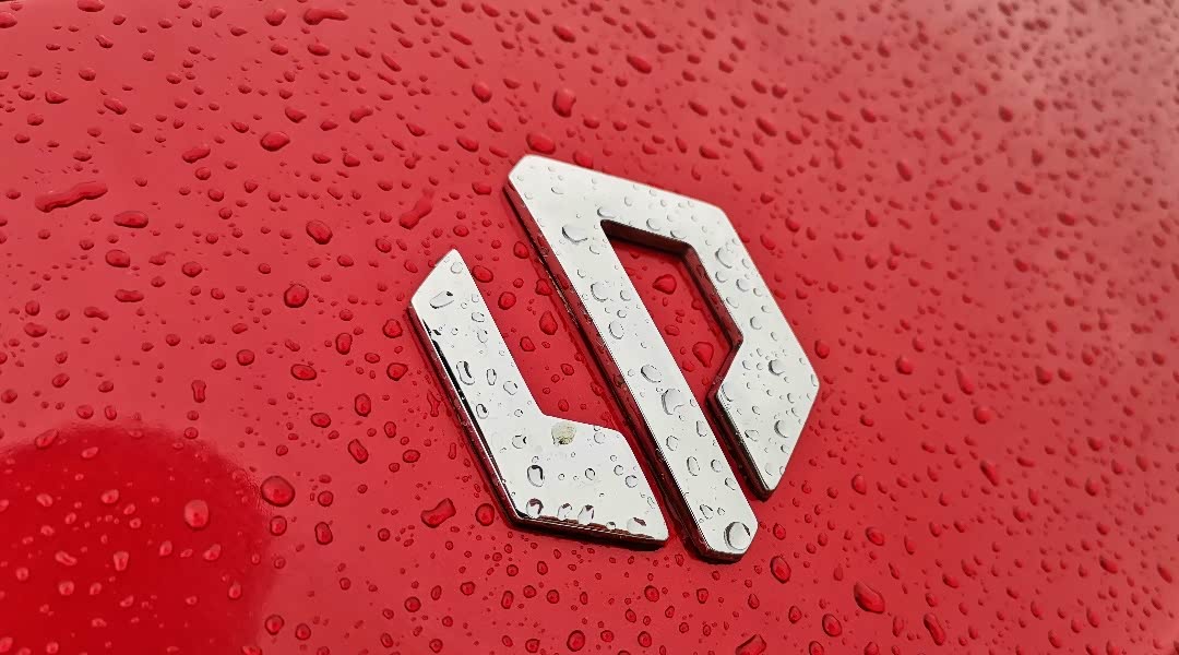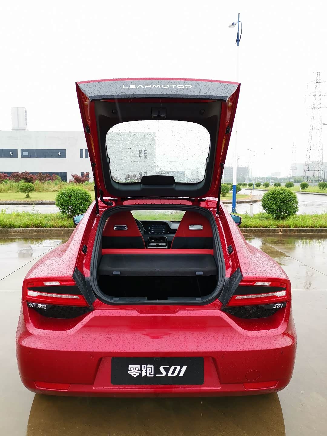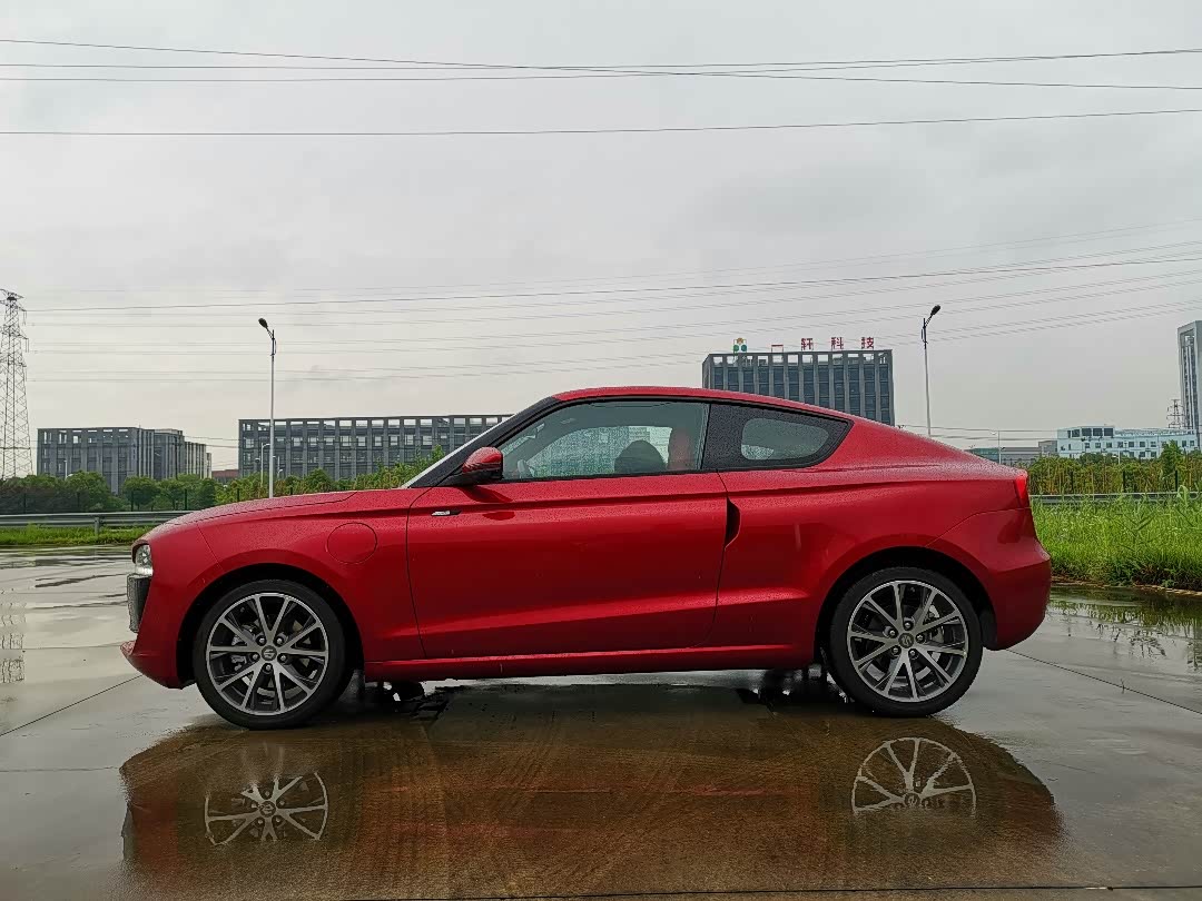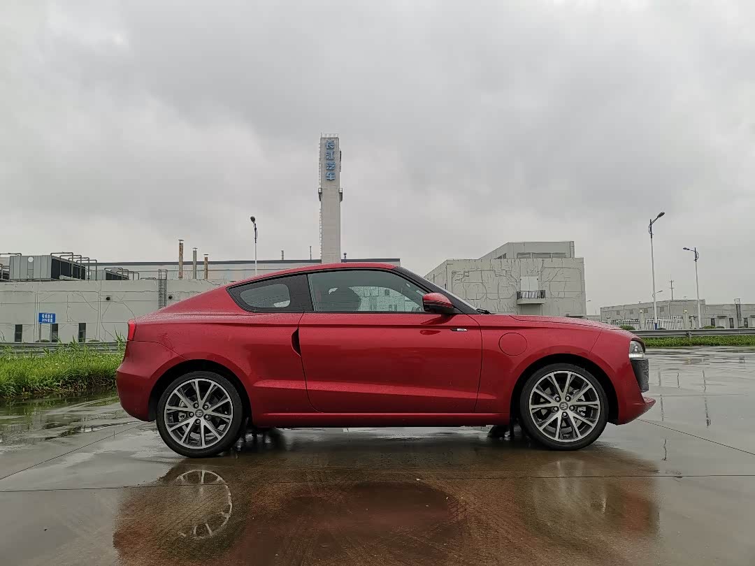 红色车漆在阴雨天也很耀眼