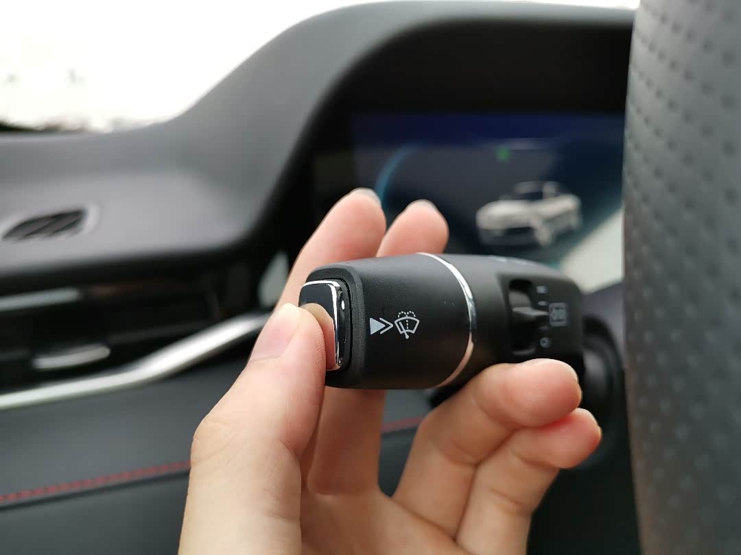 左边档把集成雨刷功能,金属按键控制雨刮液喷射,雨刷速度分为自动和固定模式,分别都是两档可调。