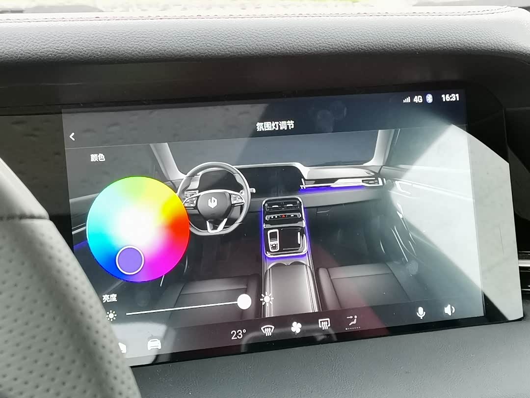 ⑤氛围灯。表扬,必须表扬,亮度足够,颜色可以个性化调节,不亚于奔驰的64色氛围灯,当然,豪华感别和奔驰比。