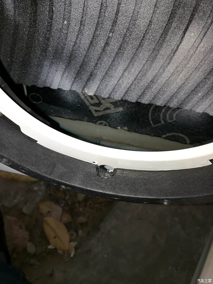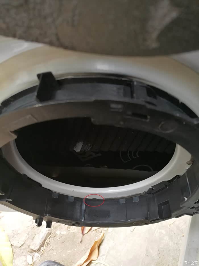 改装后的喇叭位置也会漏水,一直无法处理,找回原厂的喇叭测试,发现原厂的喇叭垫效果比改装的好多了,仔细观察后发现,喇叭垫的位置肯定会有水,关键是图中的红圈位置,哪里有个孔,刚好是可以把水排进车门里,也就不会积水在喇叭圈里了,原来车门上开的这个孔就是为了排喇叭圈的水的。C4L设计时候就发现积水的问题了。