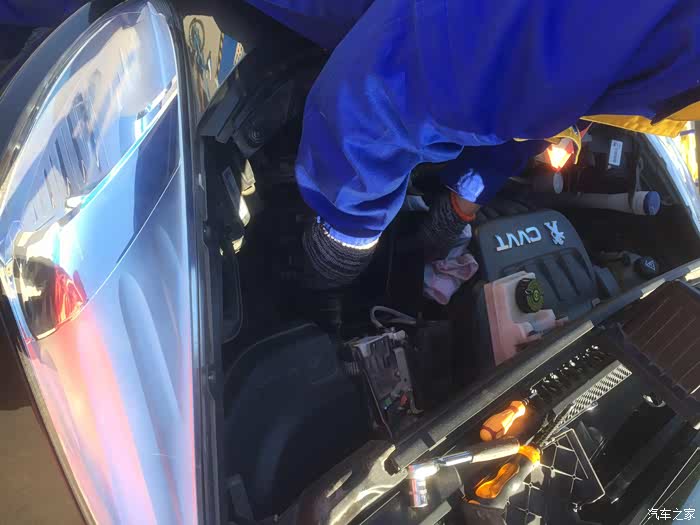 昨天也刚刚换了电瓶。多说一句,原车电瓶用了3年半,基本都是短途,最后是放了一个月,不行了。在老乡的路边店换了瓦尔塔蓝标,结果到现在刚刚两年,一个月跑八九百公里的情况下,打不着火了。所以我怀疑这是个假货。奶茶家下单,师傅上门。同样是2.0,师傅很熟练。一是空滤不用拧螺丝,松开节气门螺丝后直接拔,空气滤整体可以拔下来。二是电路板不用拆,虽然空间很挤,但是多试试看,可以把电路板和电池盖子向右扒拉开,把电池换掉。