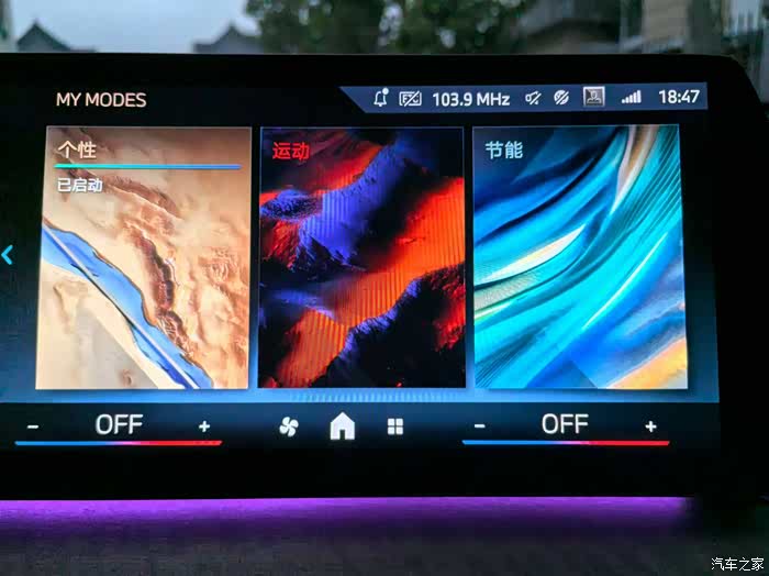 日常驾驶电门很跟脚,但过猛的动力在个性化和运动模式下可能会给乘客带来不适,节能模式更加友好,有点像大排量油车的徐徐道来的感觉。(注:三种驾驶模式,个性化、运动、节能。)