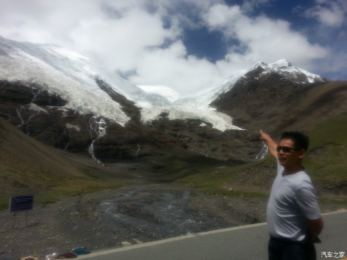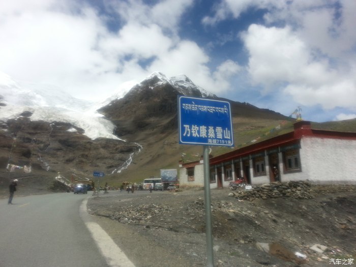 远方的乃钦康桑雪山。乃钦康桑雪山是西藏四大神山之一,位于西藏浪卡子县和江孜县交界处317省道旁,海拨7191米,由于高寒,山体顶部尖锥突兀,常年终日白云缭绕,飘撒粒雪,终年累积、压实,形成了厚达20—100米的冰层,冰层受本身重力影响,缓慢移动发育成了多条冰川。卡若拉冰川就在乃钦康桑雪山下,位于浪卡子县和江孜县交界,就在公路边上,雪白的冰川如一副巨型唐卡挂在山壁上,在阳光的照耀下熠熠生辉。卡若拉冰川的融水就是雅江上游重要支流年楚河的东部源头