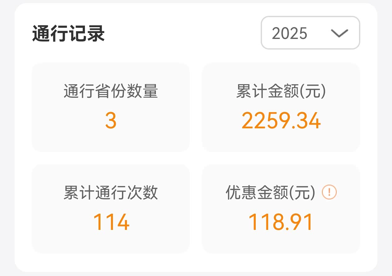 ETC:全年包含自驾游的通行费一共是2259.34元,平均每月188元。