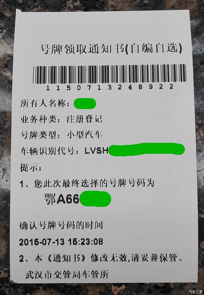 7月3号江夏4S通知提车,推到6号请假去提车,打算当天一天提车、上牌全部搞定。上牌就在江夏4S很近的普安车管中队。说实话,经过漫长的两个月的等待,对于提车也没什么激动的心情了,上牌的流程也早熟记于心了。