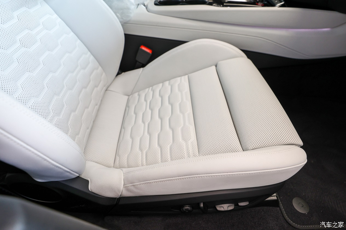 正面看,奥迪标志性的六边形前脸,一体式蜂窝状封闭造型格栅与车身颜色巧妙地融合,这种撞色搭配的设计很是别致和新颖。