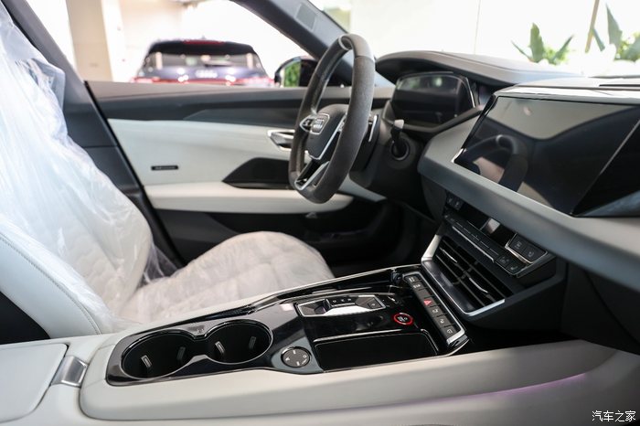 车门和座椅配备了Nappa真皮和Dinamica内饰材质,看起来就很豪华,此外,这辆车还带有奥迪e-tron sport sound声浪系统,期待下一次有机会能好好感受一番。