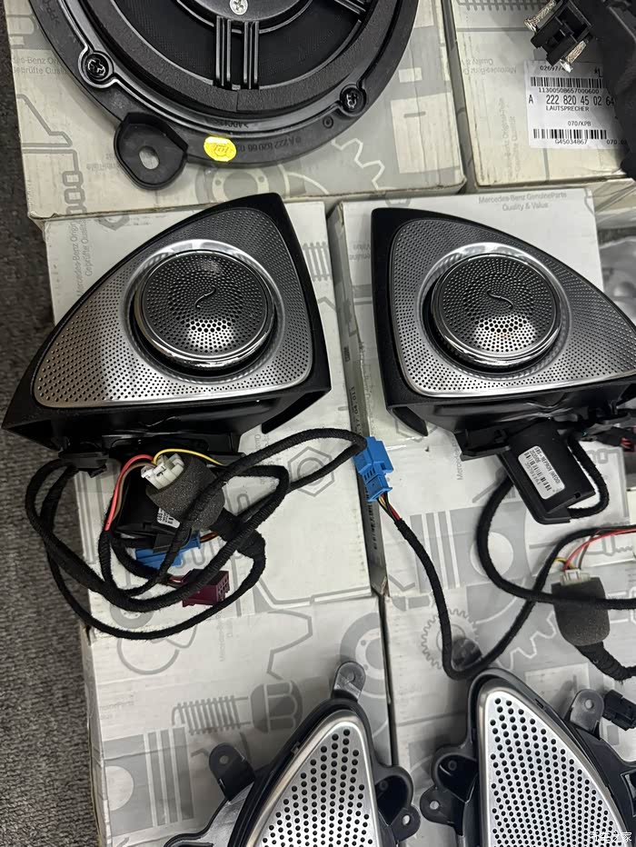 另外后市场加装升级要注意只有原厂顶配车型可选配大柏林之声的车型才可以后加装升级。要根据个人预算选择大或小柏林之声。原厂全新件通过 4S 店渠道在奔驰厂家订购原厂下线件类似手机水货两者价格和配件成色有差距但功能正常。选择加装升级要找靠谱且经验丰富的店家认清配件避免被坑。