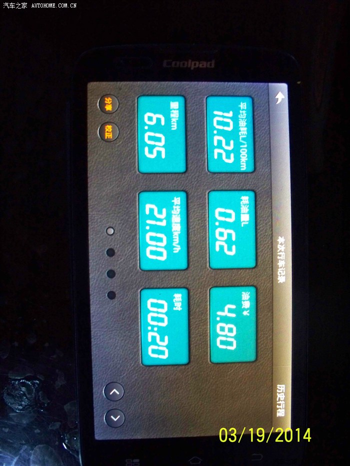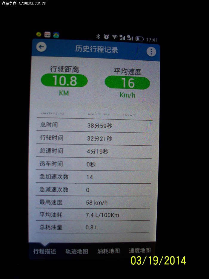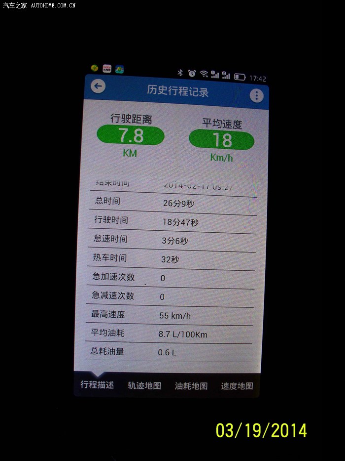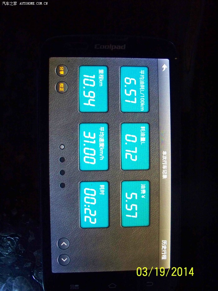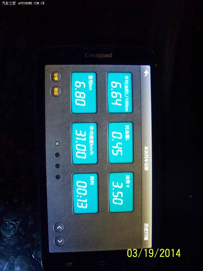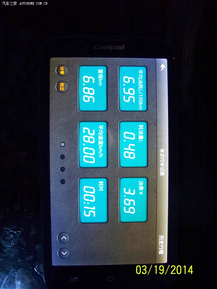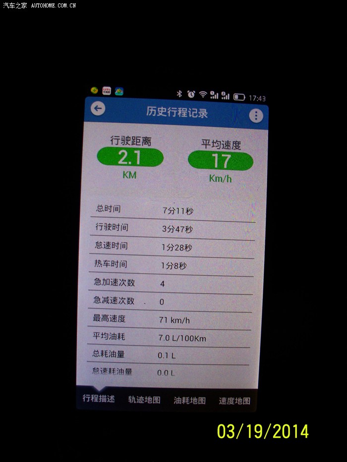 想申请认证车主,也看到论坛里很多关于MM油耗的讨论。其实油耗和路况、好的驾驶习惯有很大关系。上传的图片中,6.5KM左右的距离是常跑的路,很熟悉,所以油耗低点!仅供参考。两个不同的软件测试,防止个别软件篡改数据。图片有点多,不要着急呀!