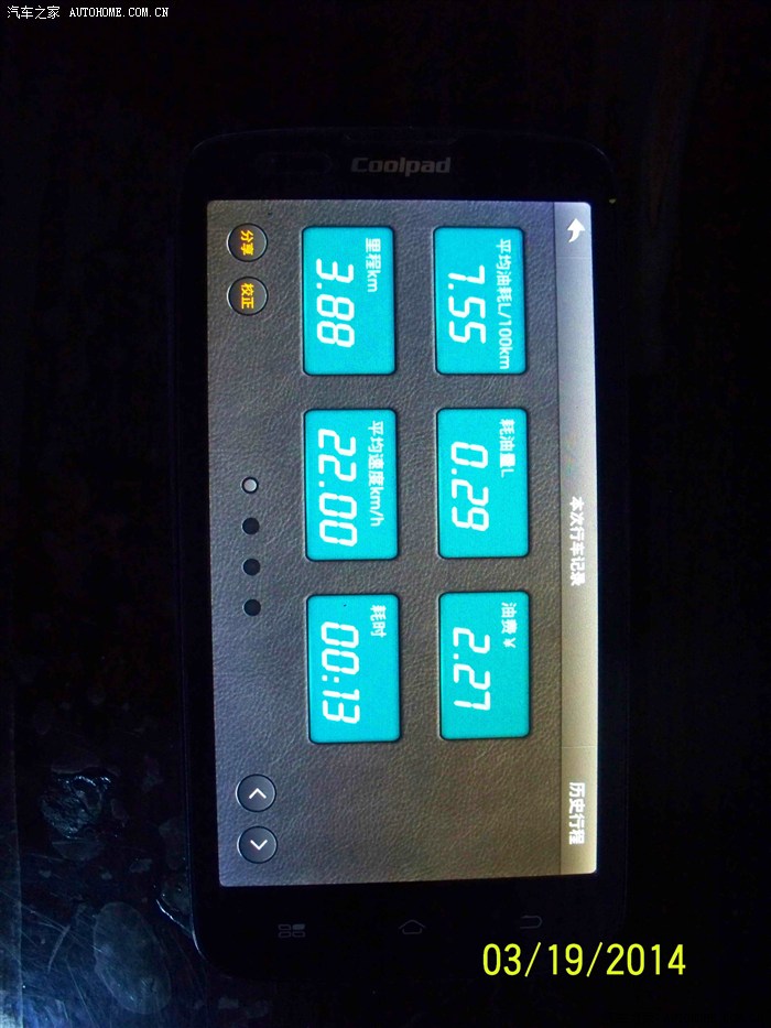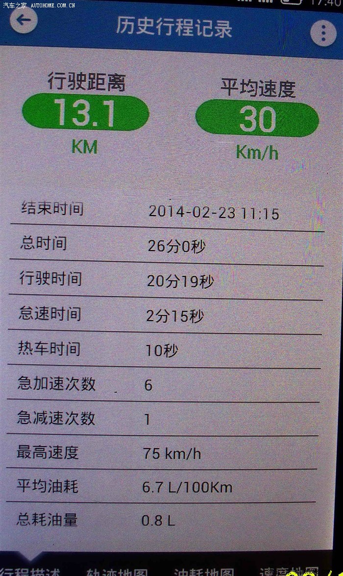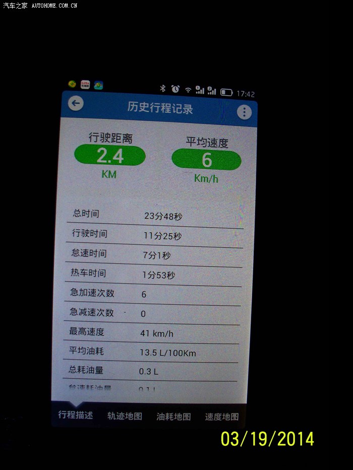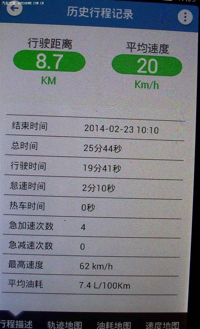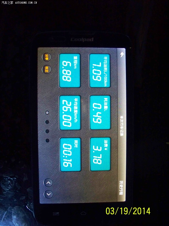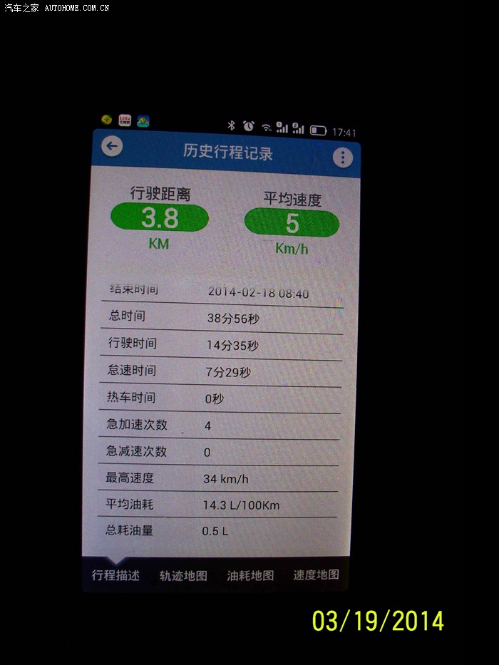 想申请认证车主,也看到论坛里很多关于MM油耗的讨论。其实油耗和路况、好的驾驶习惯有很大关系。上传的图片中,6.5KM左右的距离是常跑的路,很熟悉,所以油耗低点!仅供参考。两个不同的软件测试,防止个别软件篡改数据。图片有点多,不要着急呀!