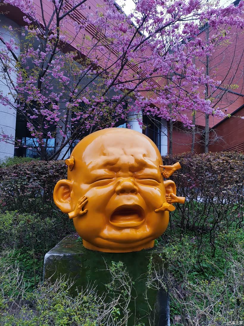 一进校门,在右边的草坪上,一大片桃花开得正旺,粉色的花与背后的红墙建筑相得益彰。再往前,会看到富含某种神秘象征意义的雕像。最里面的坦克库艺术中心不容错过,里面虽然只有一架坦克,但那些五花八门、设计奇特的门,尖顶的彩色屋顶,非常值得一看。如果运气好,还能碰上一只猫。
