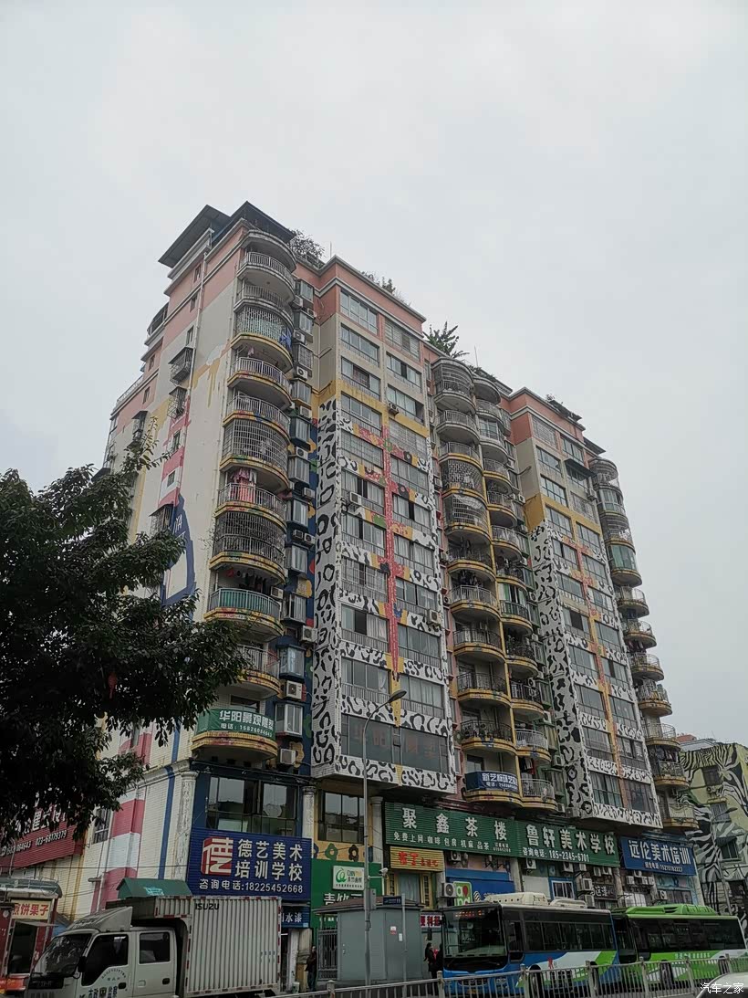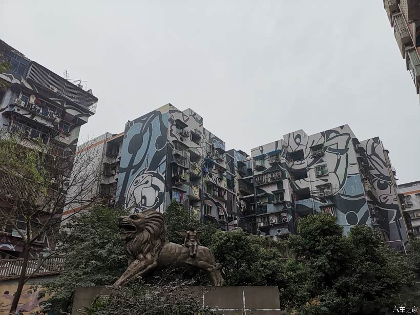 位于九龙坡区的黄角坪,离主城中心较远,目前还没有地铁可以到达,不过已经在修。因为这里毗邻四川美术学院,受其影响,这条街也变成了涂鸦街。其实在涂鸦之前,街道两旁的建筑一样破旧,就像是十八梯旁或是磁器口后山看到的那样。但那些残破都被油漆覆盖,整条街区焕然一新。