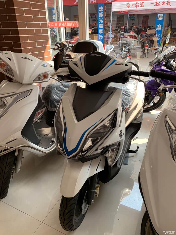 其实福喜还是挺耐看的,国三的不想要,国四没白色这就难为住我了,别急那个角落里好像有一台白色的本田小绵羊,看着挺奈斯,看这犀利的大眼,重要的还是国四!一键启动,刹车联动!NSC发动机,这***比福喜车身还要重,那岂不是更稳!