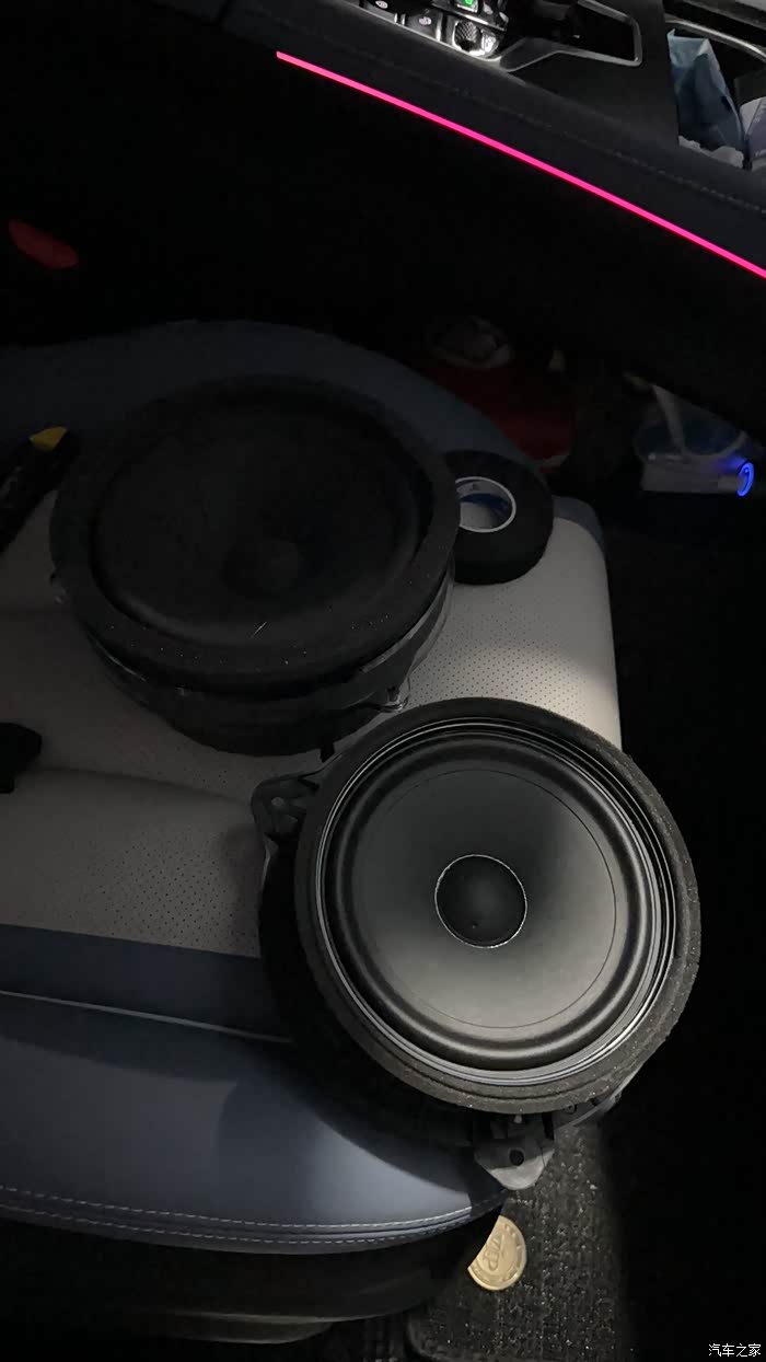 拆下原车唎叭我只做了喇叭口内部的止振处理,因为我的定做的喇叭座已经形成了一定的空腔所