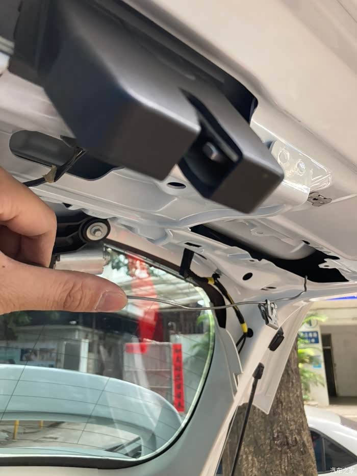 这是用了一根硬一点点的电线绑上记录仪的线去穿过车身!