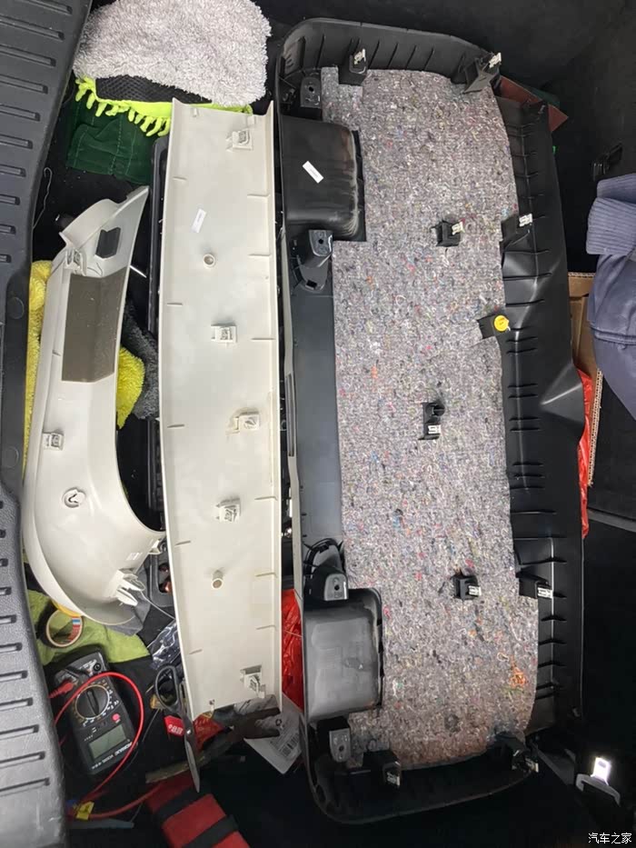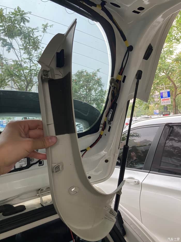 准备一条铁丝 因为卡扣在拆下来时,容易直接掉到尾门里面要勾出来!不然以后行车随时有异响