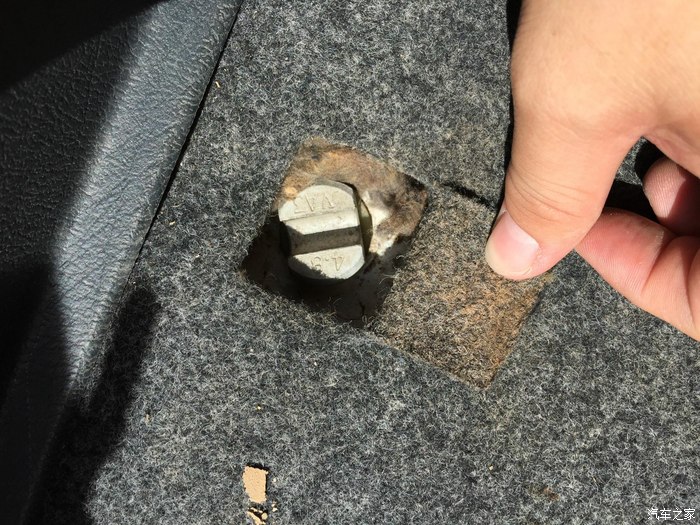 下面非人类的设计来了,备胎不放在后备箱里面,而是挂在底盘上面,靠后备箱开口处的一颗螺栓固定